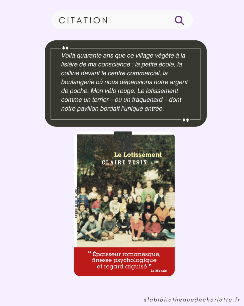 Nous nous retrouvons plongés dans la France des années 80. Les non-dits et secrets jusque-là gardés vont peu à peu se dévoiler ! Une sorte de huis-clos va se jouer dans ce lotissement qui semble similaire à tant d’autres. Un livre croustillant !